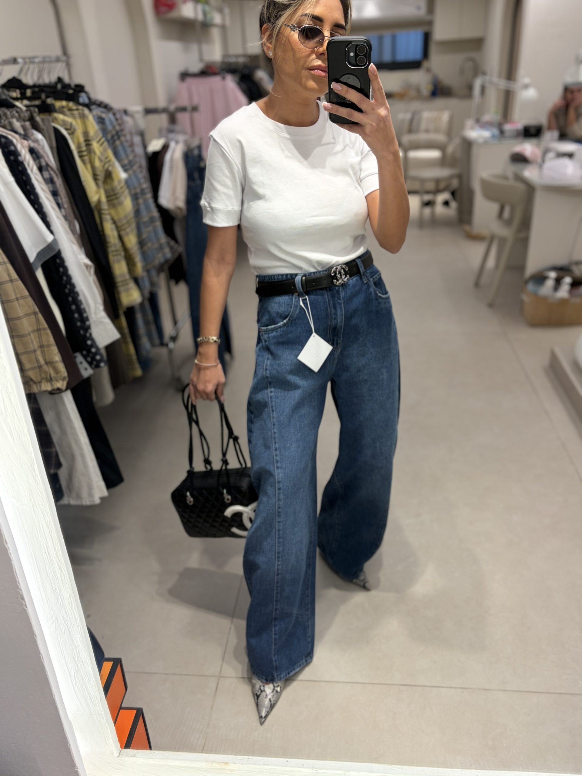 כמות של ג׳ינס כהה תפרים בצד דגם- 1950