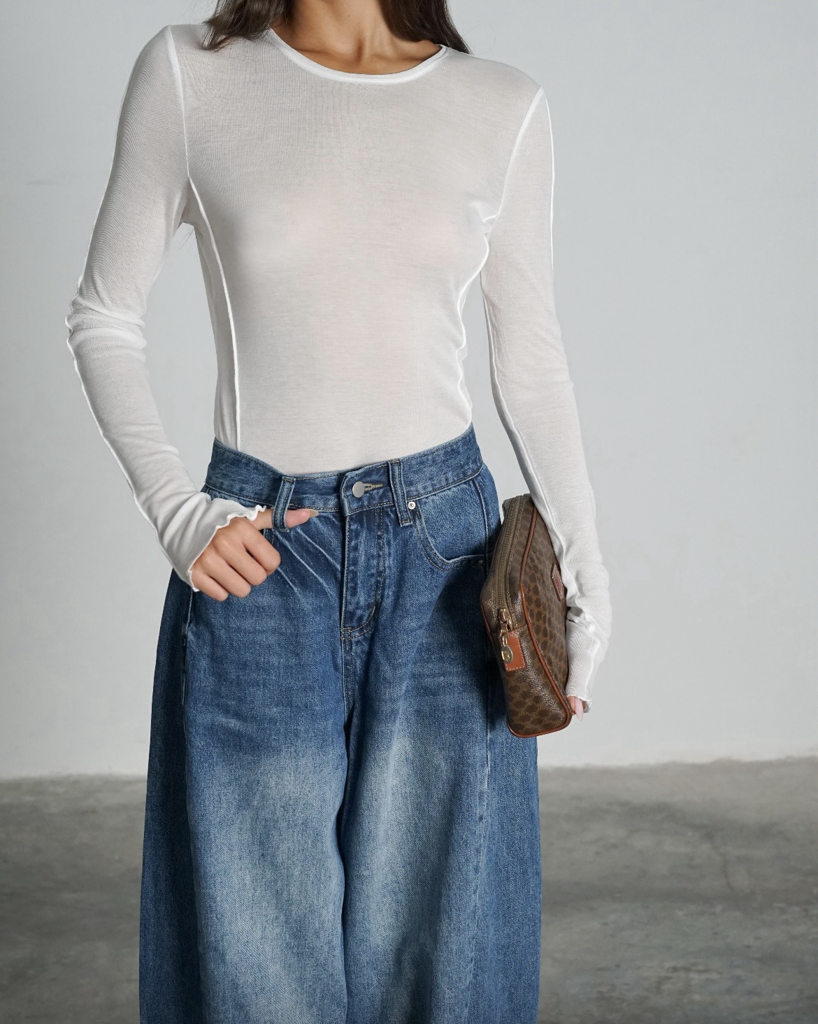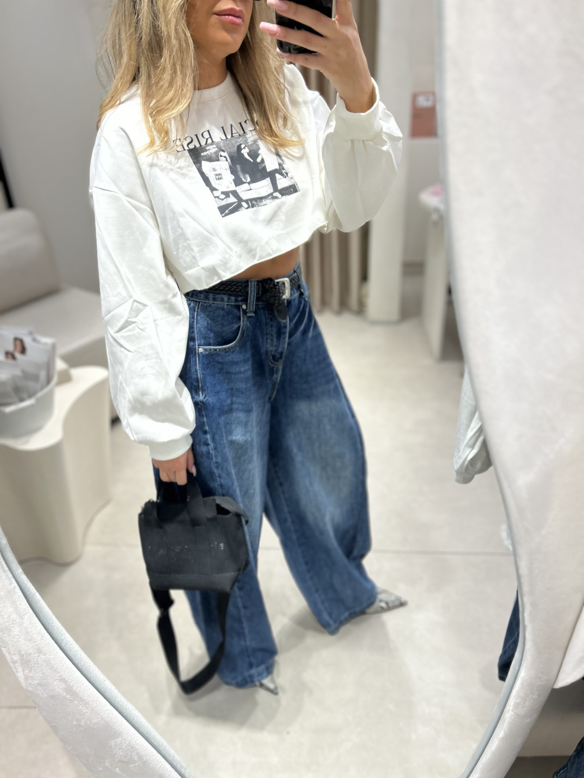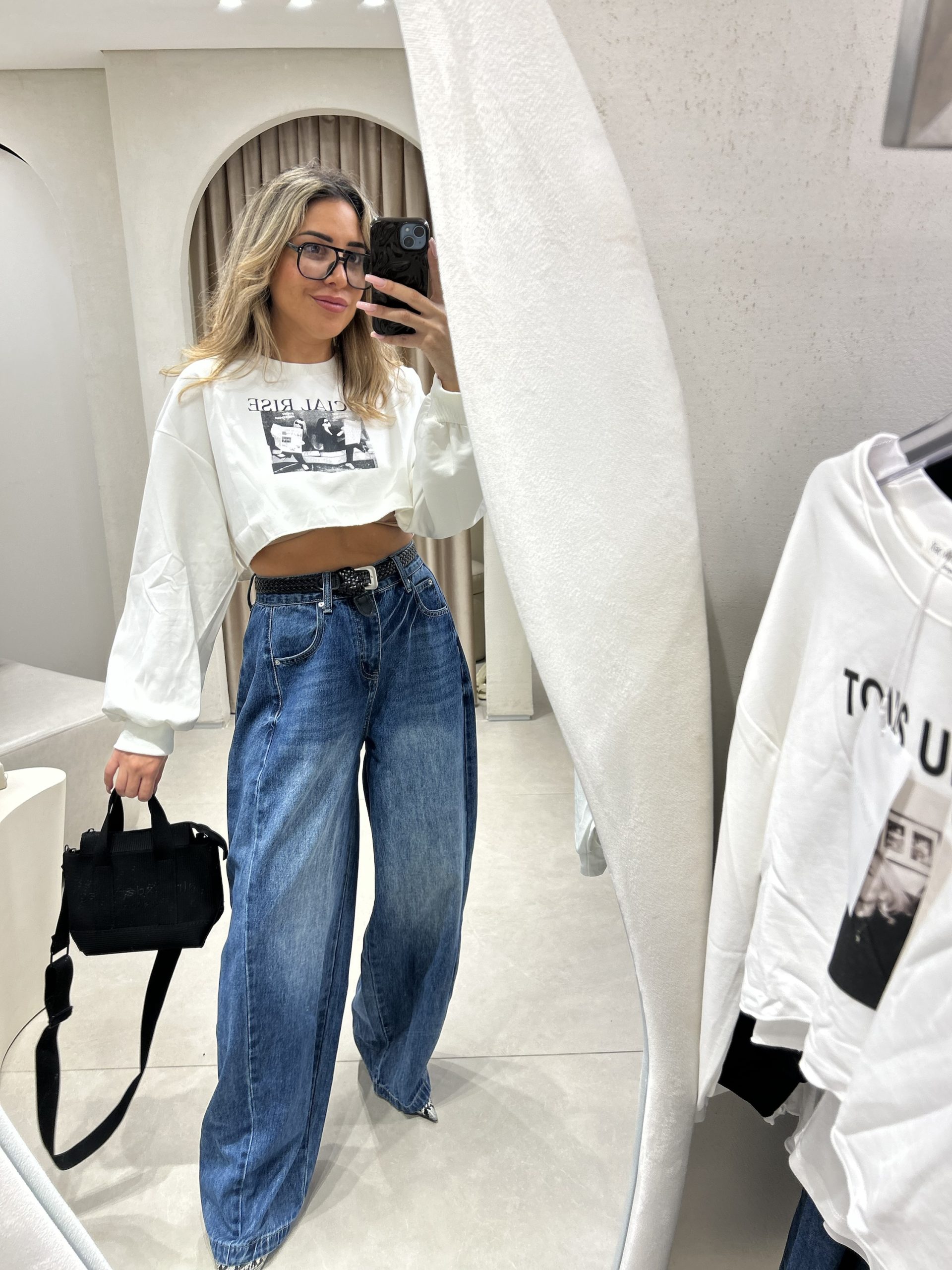 חולצת קרופ שרוול משולב