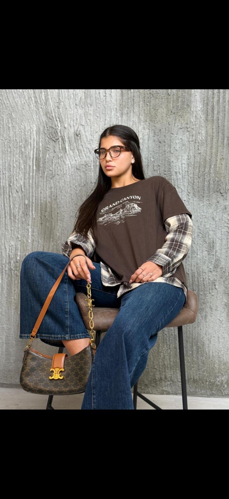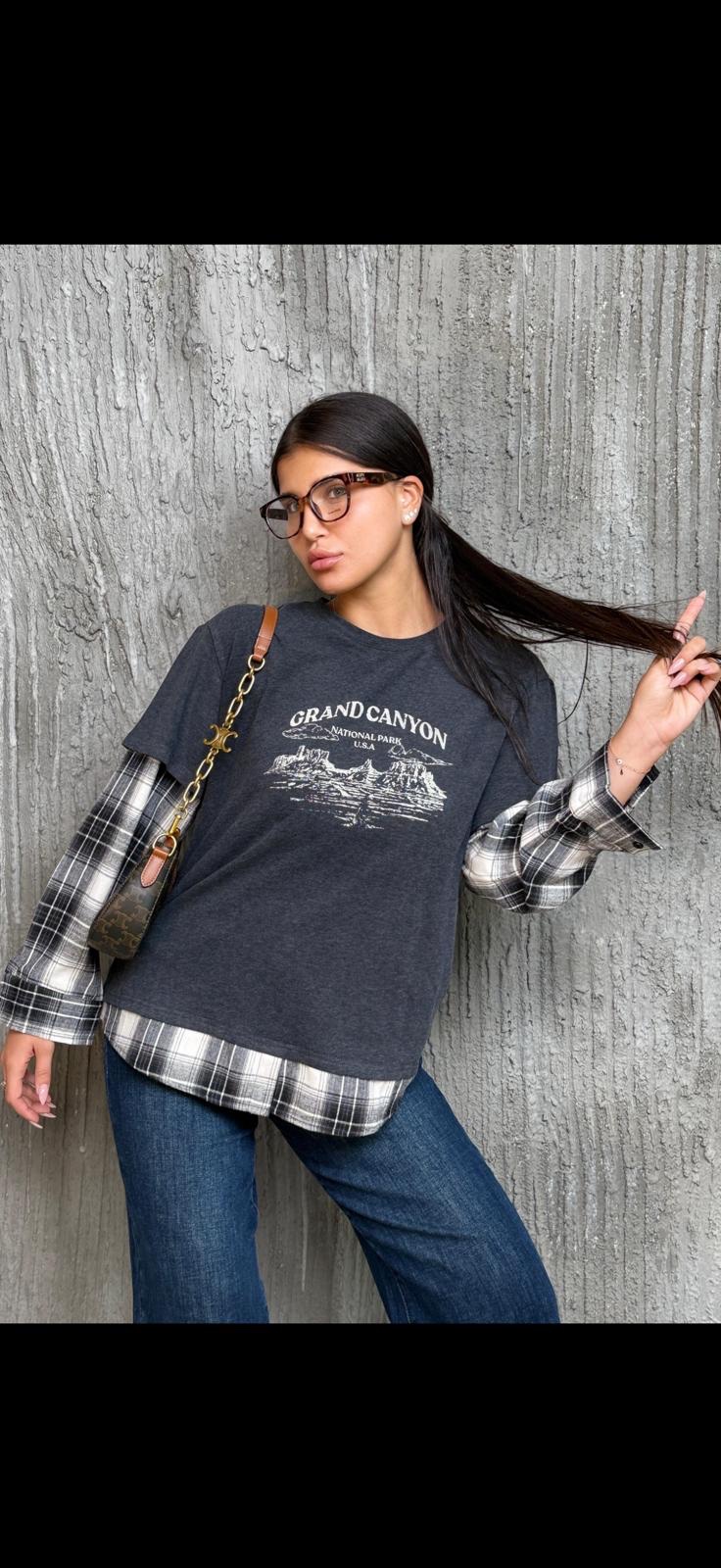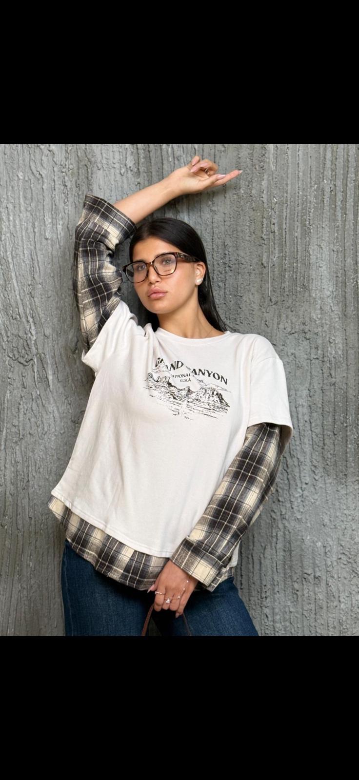 / חולצת טישרט שרוול משבצות