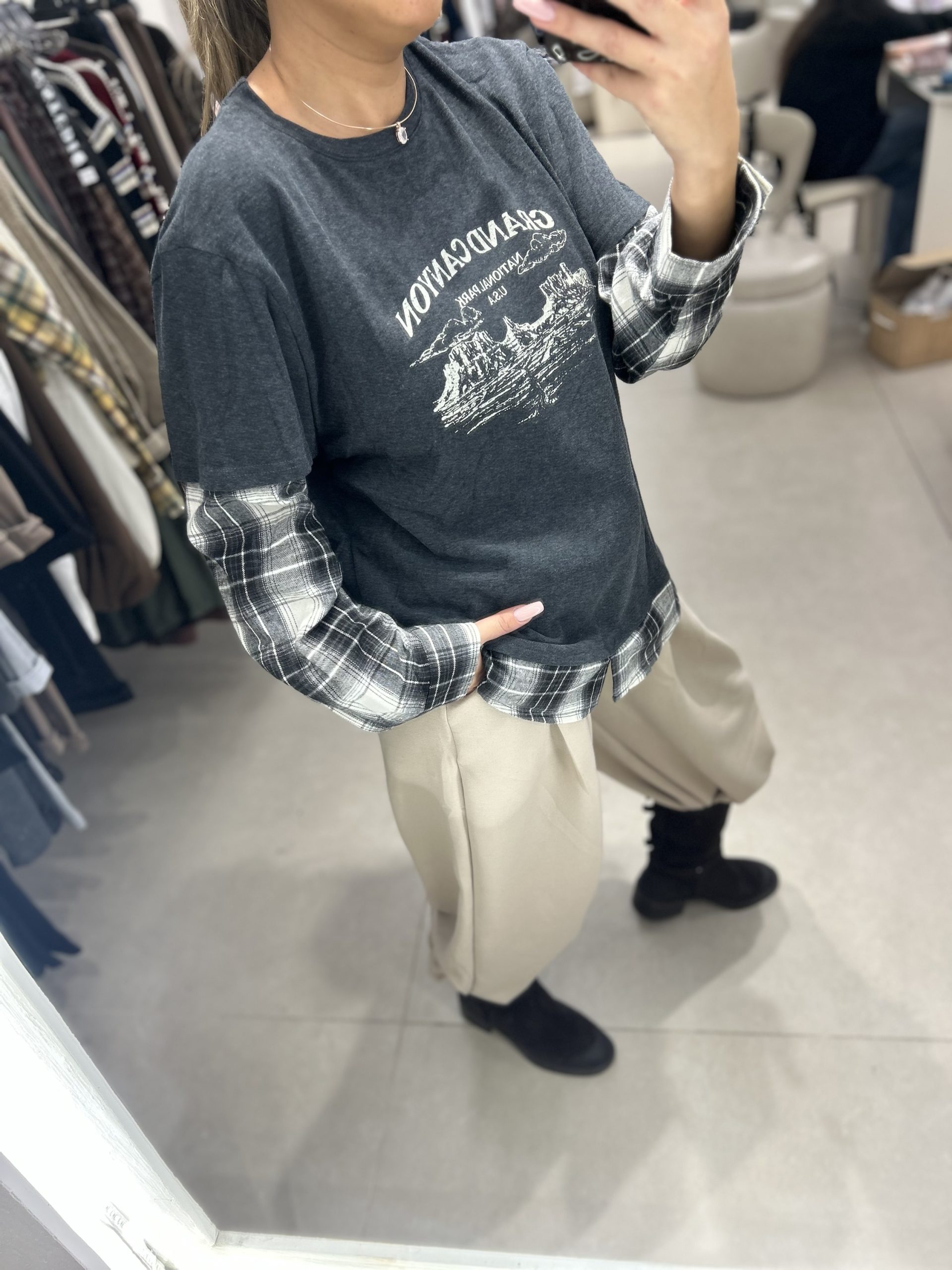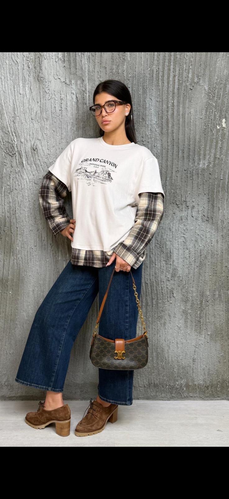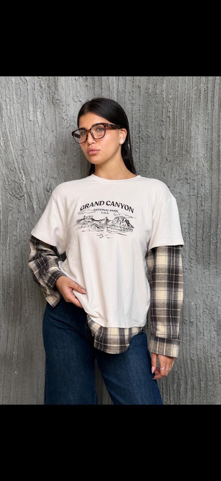 / חולצת טישרט שרוול משבצות