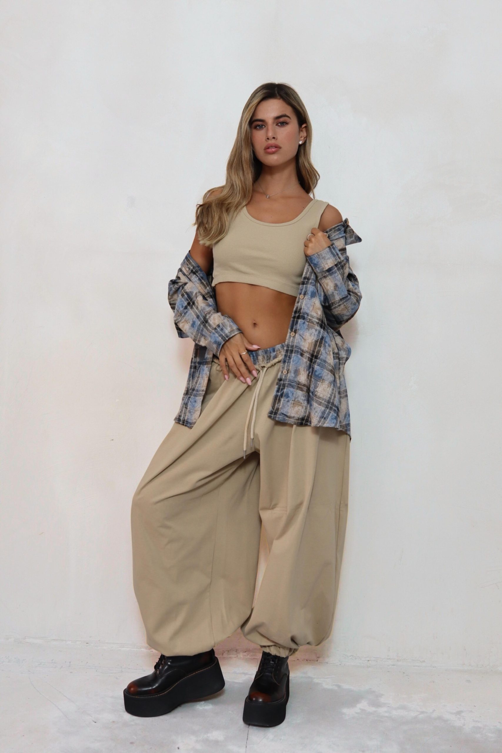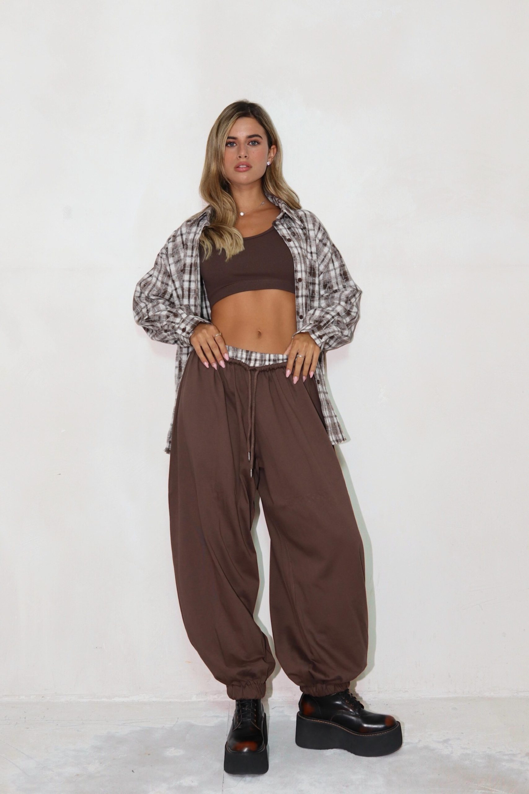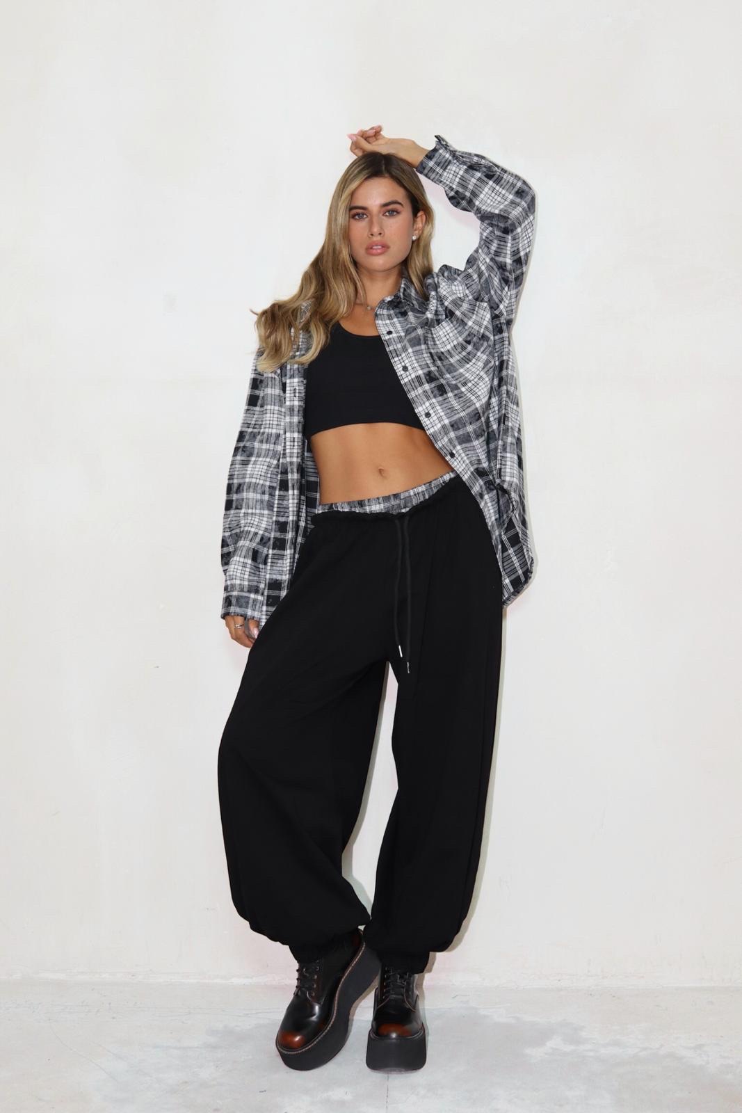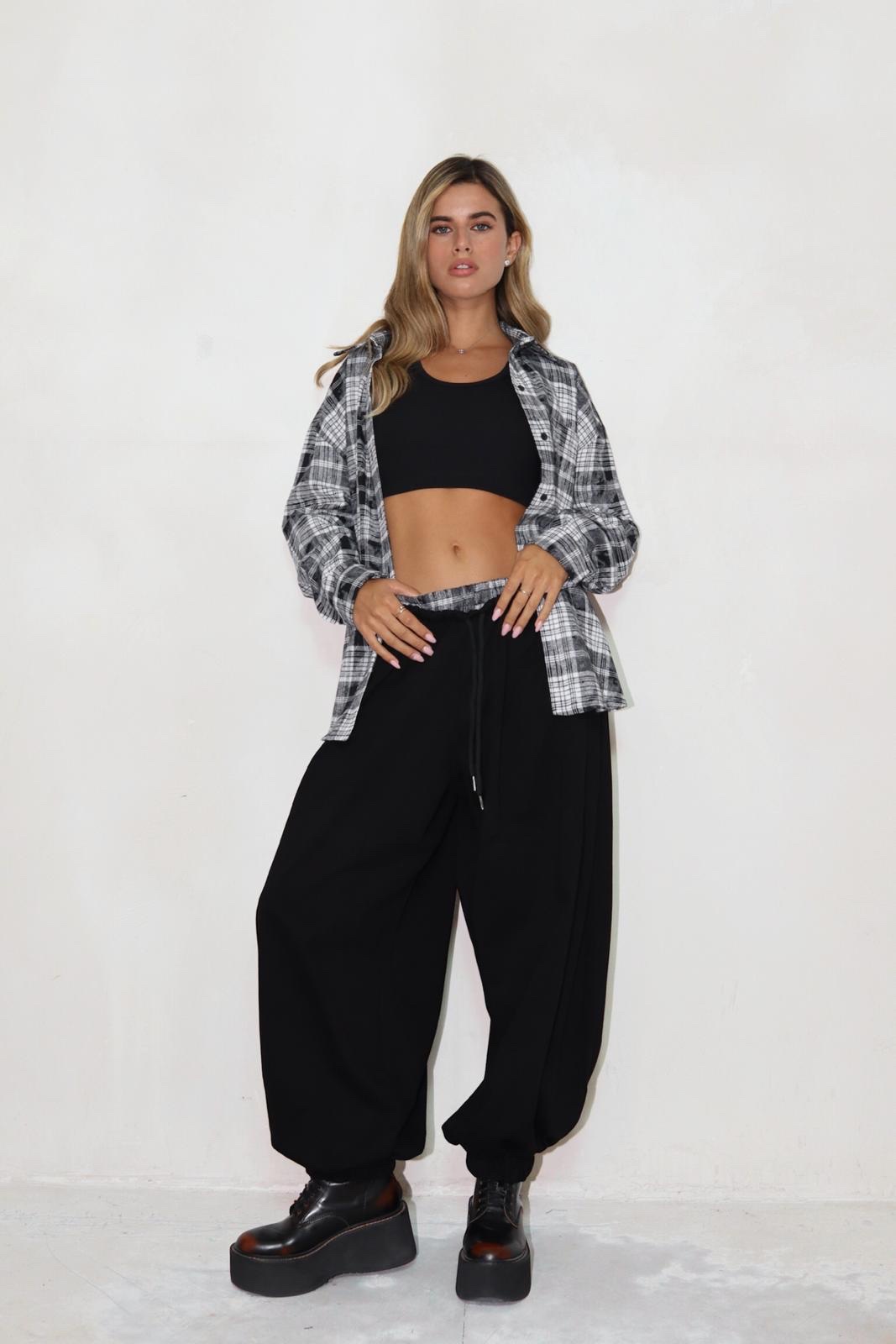 מכנס בלון משולב פלנל משבצות