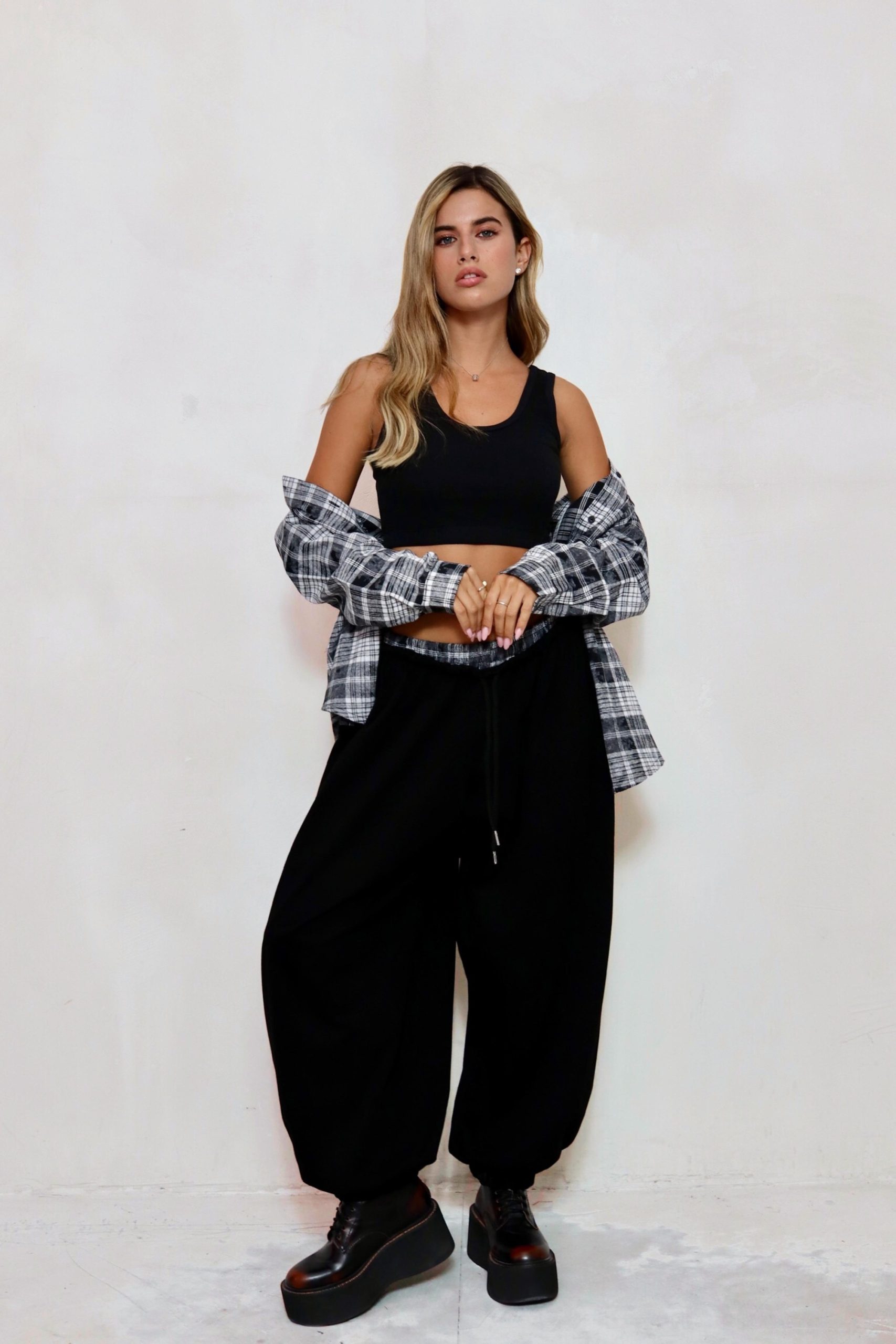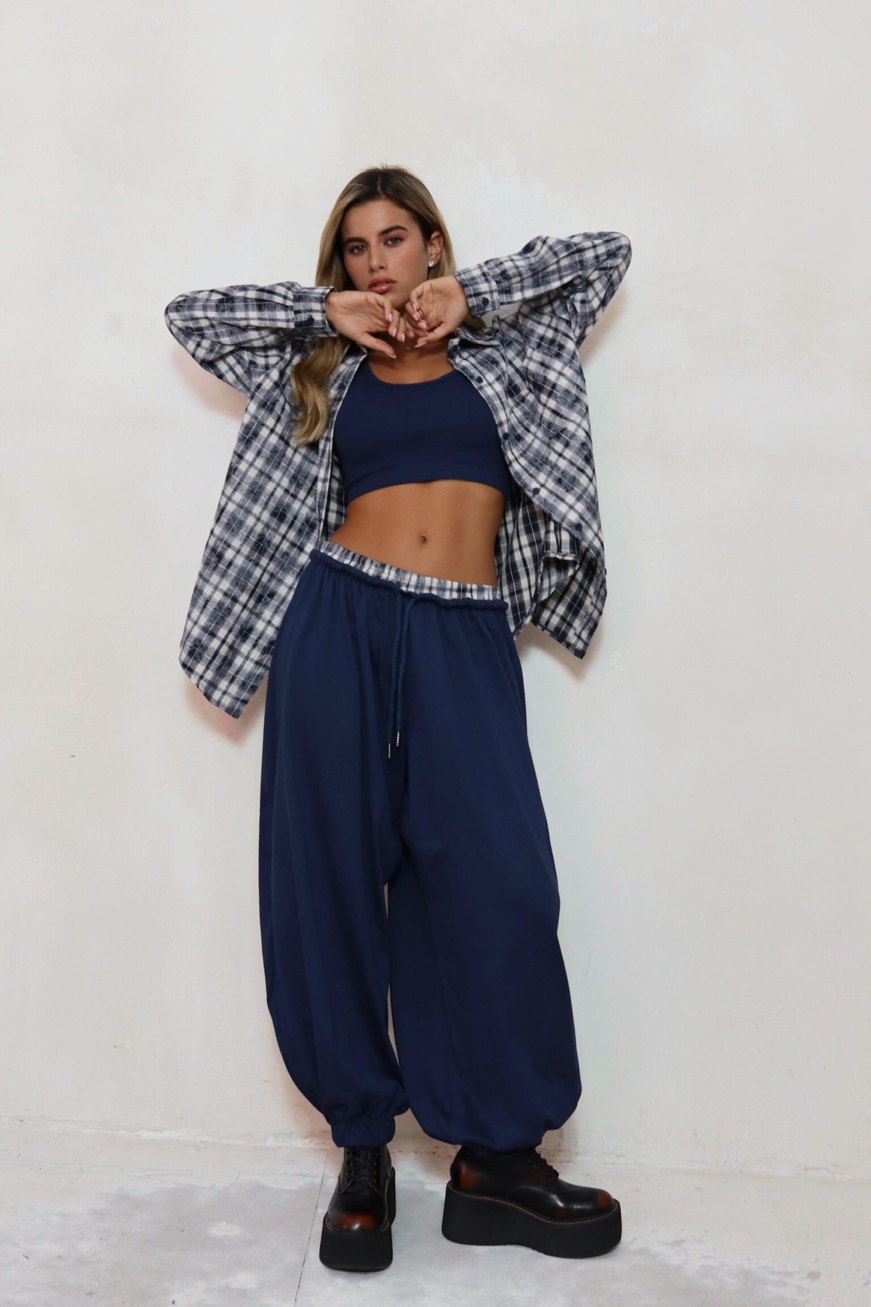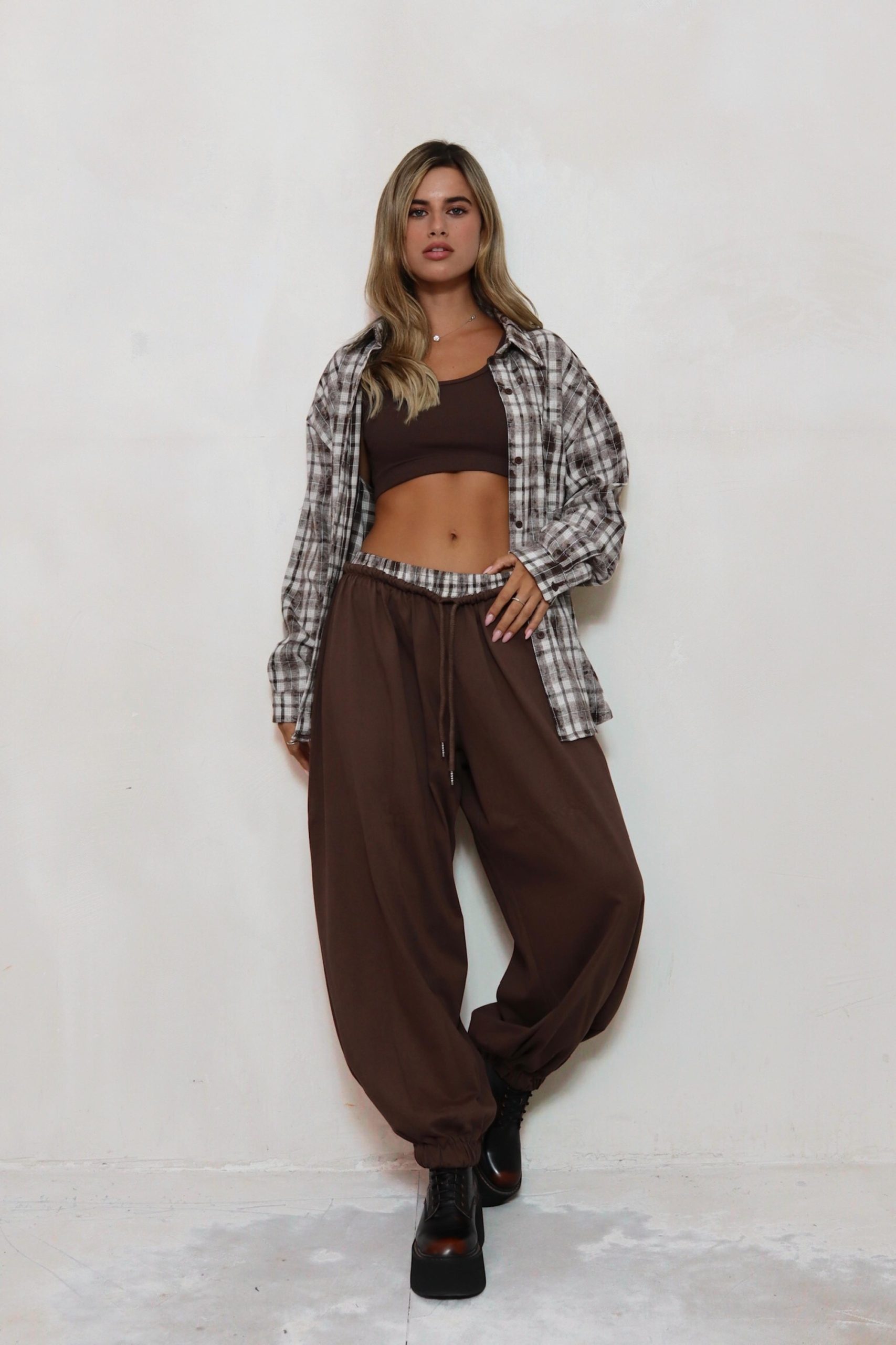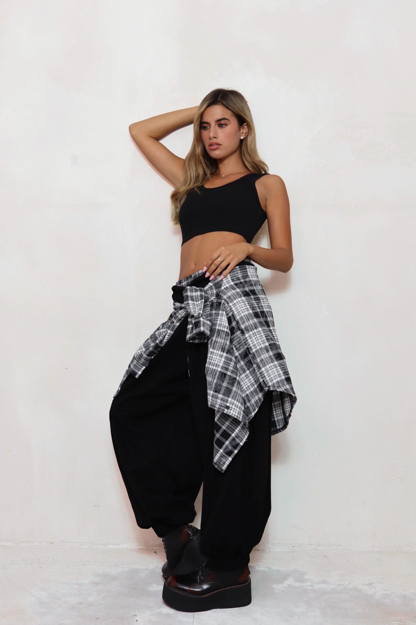 מכנס בלון משולב פלנל משבצות