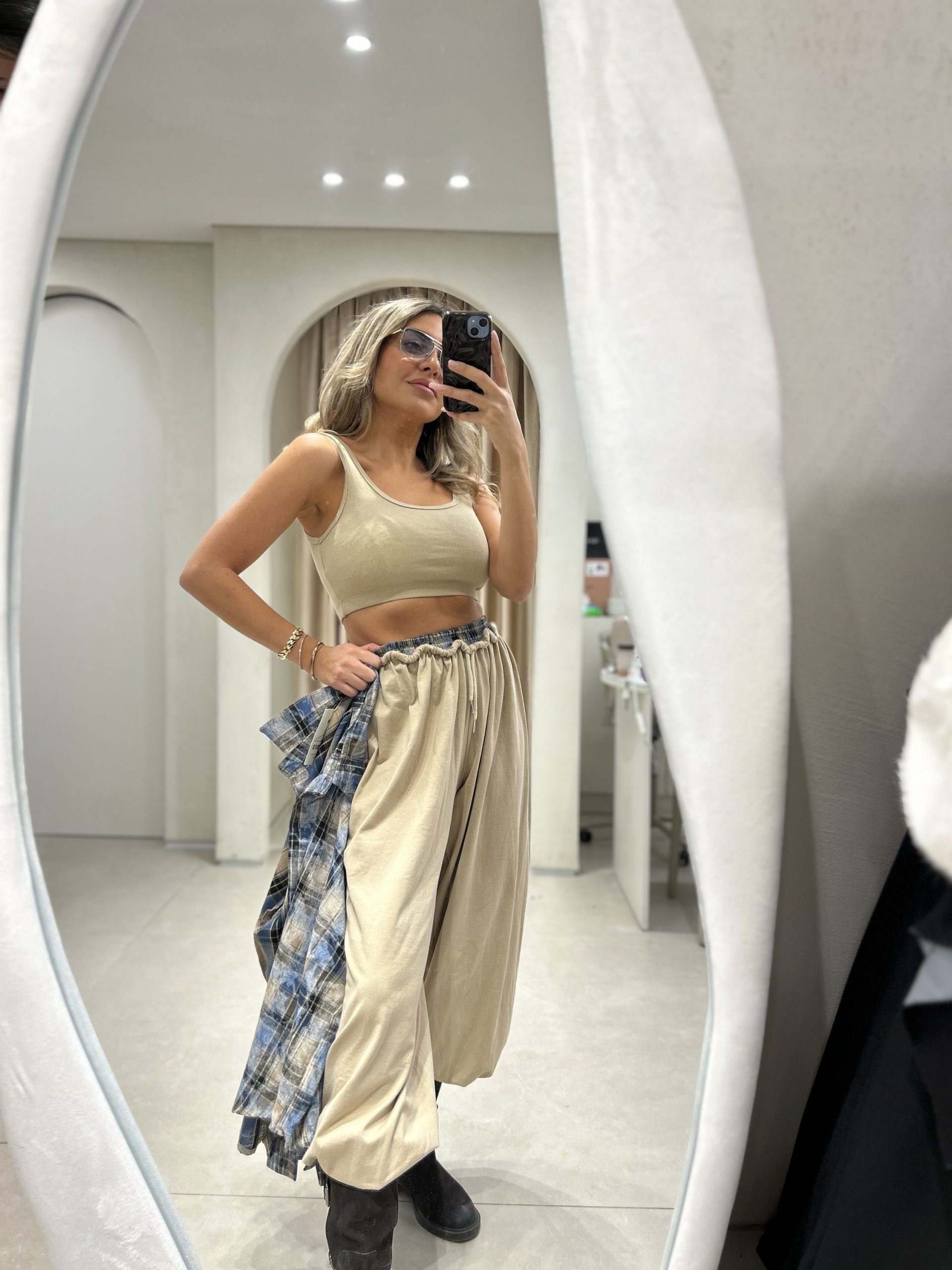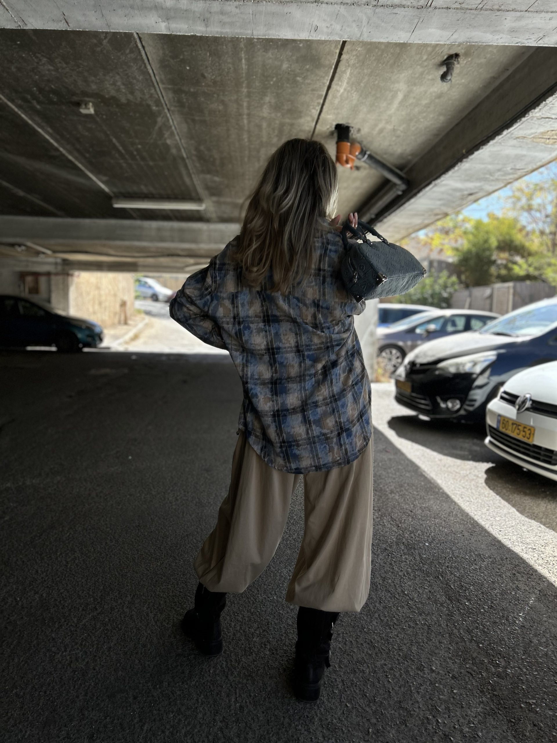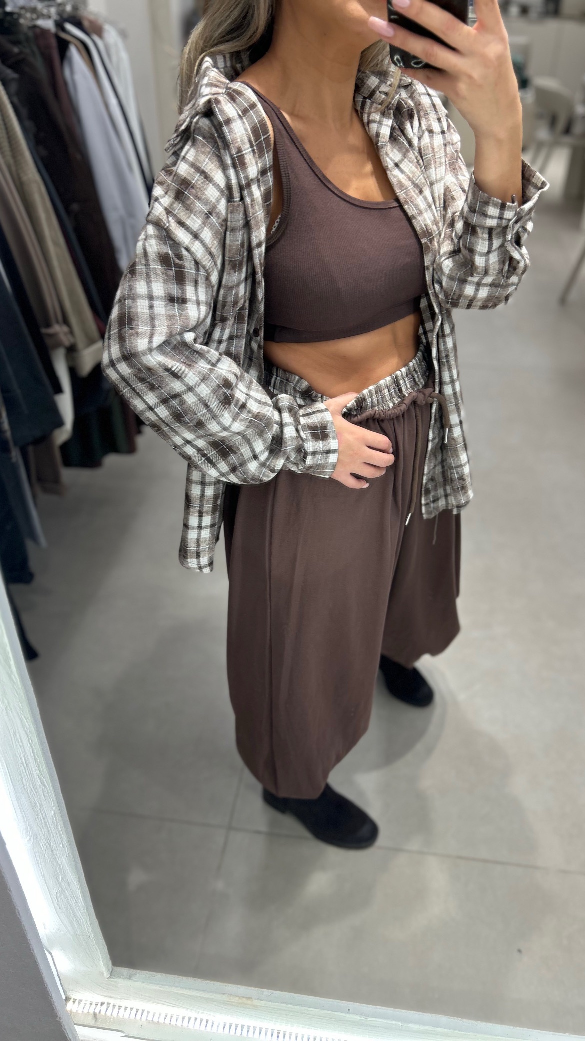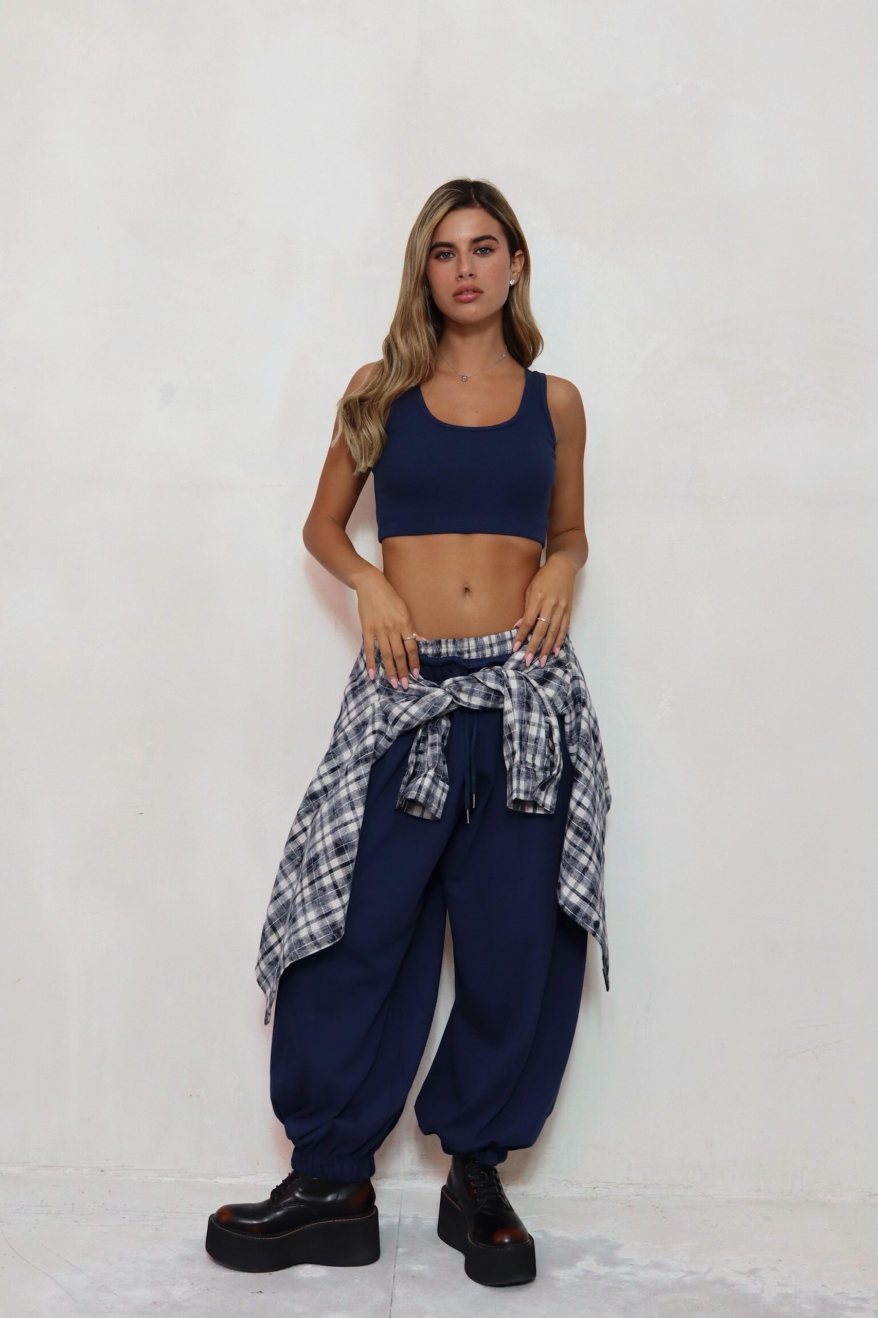 מכנס בלון משולב פלנל משבצות