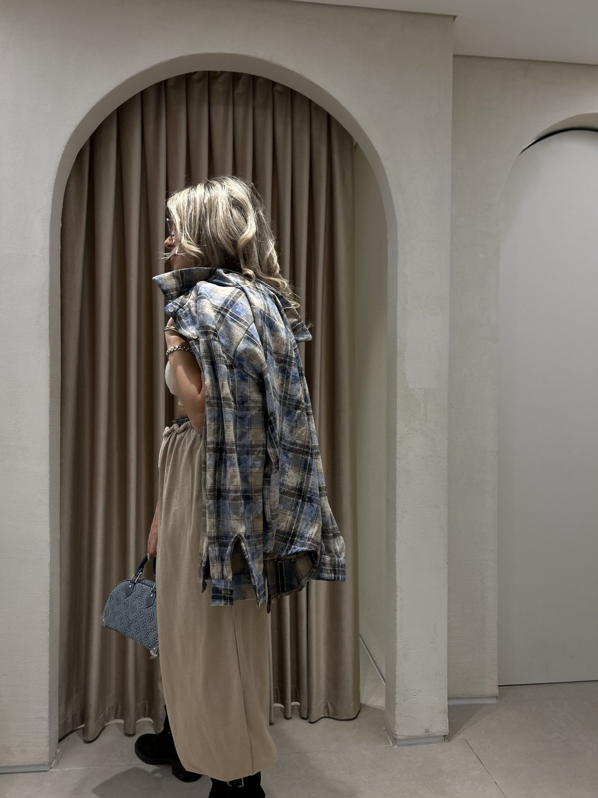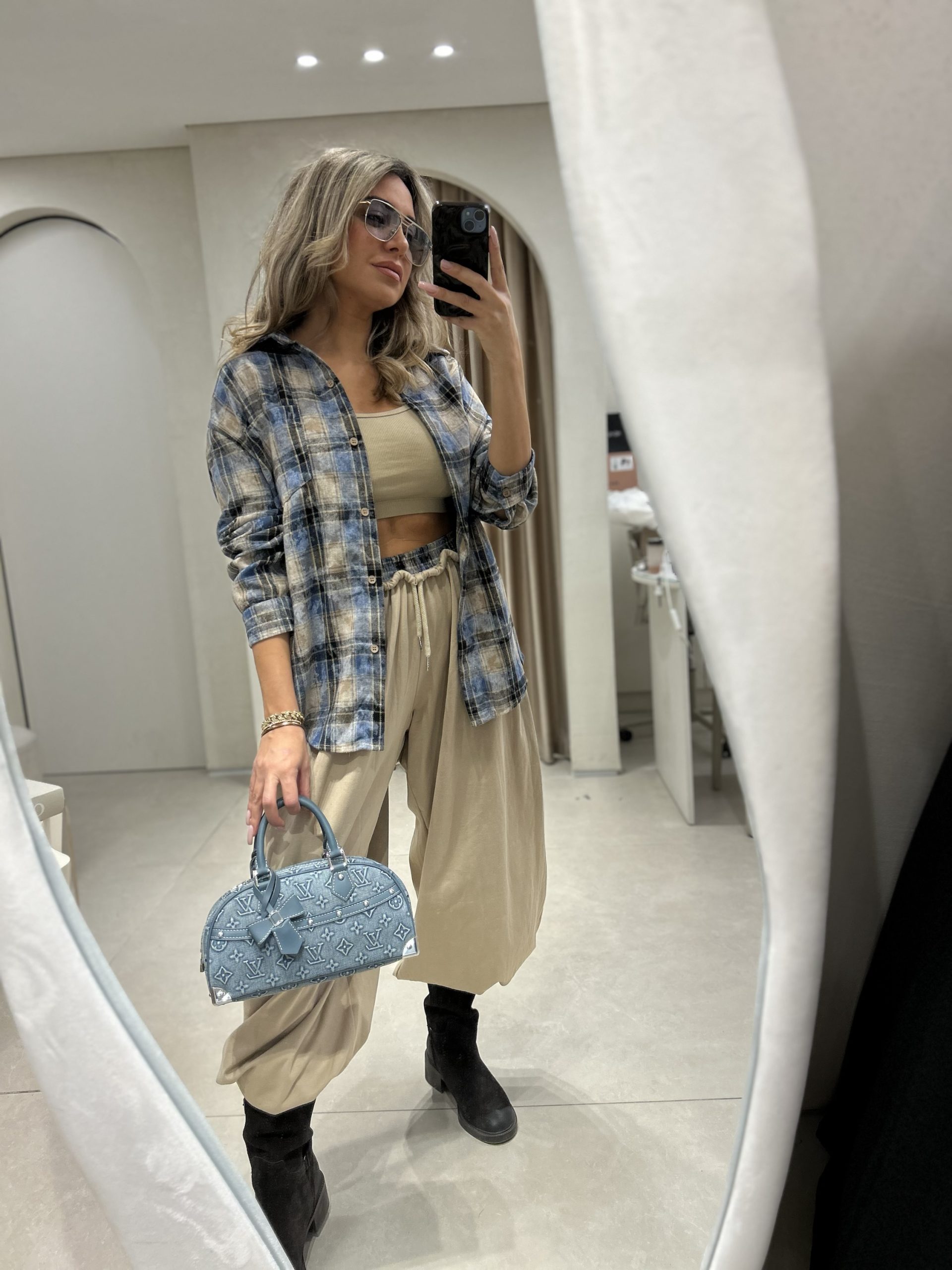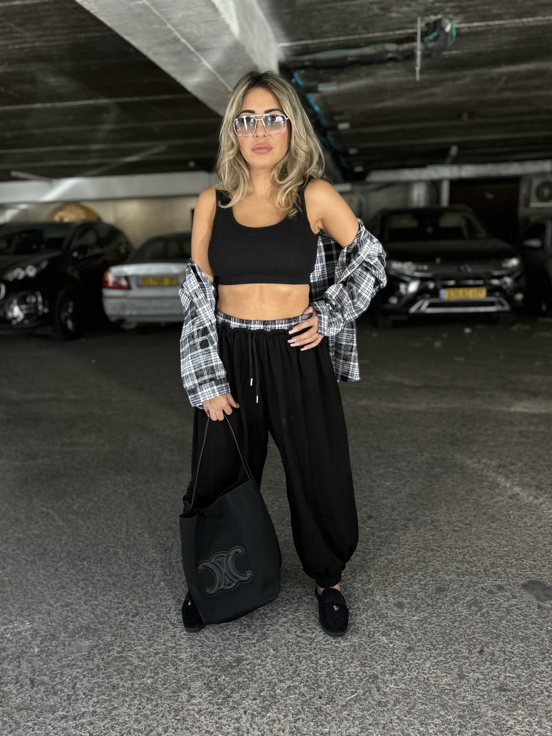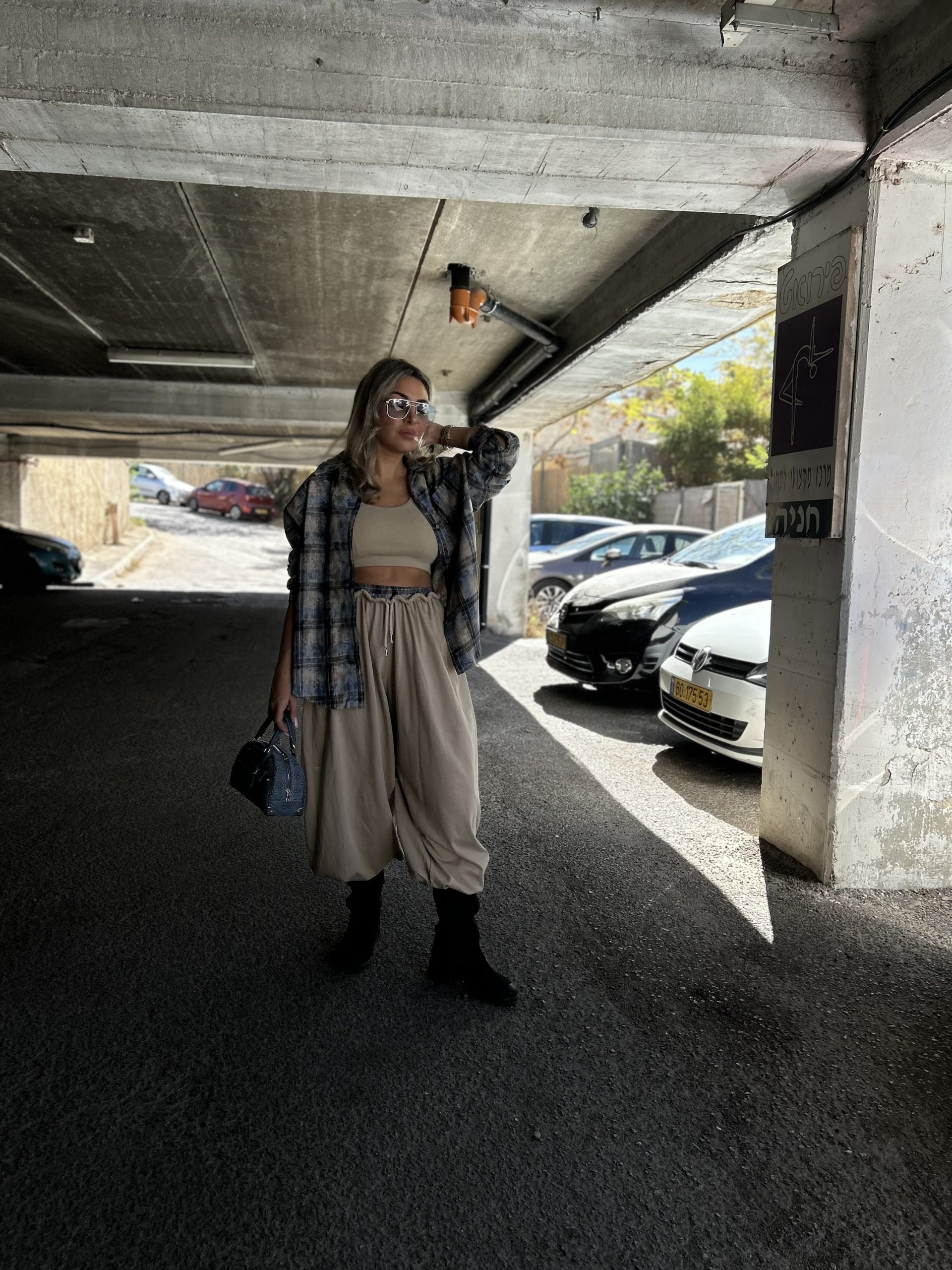 מכנס בלון משולב פלנל משבצות