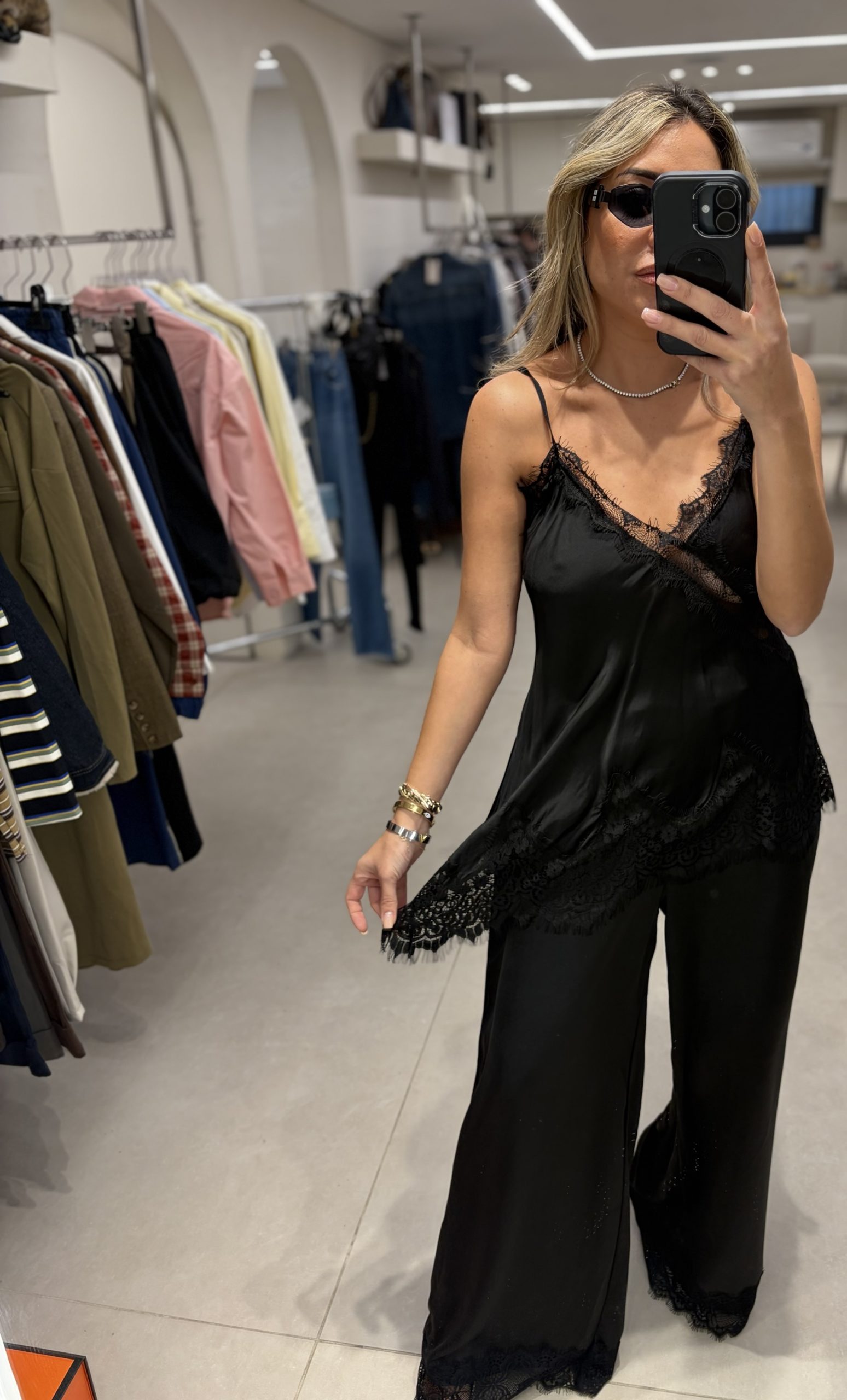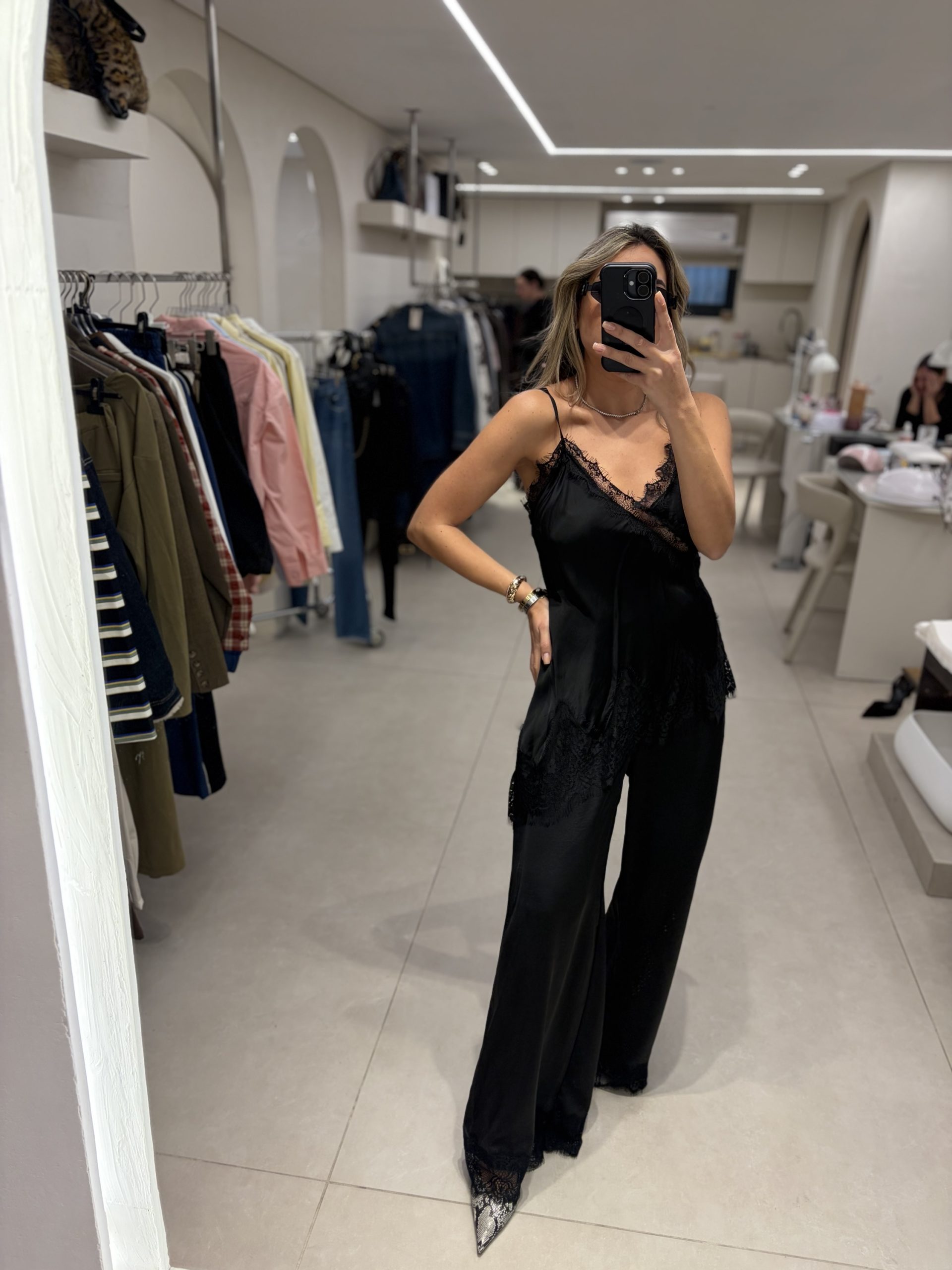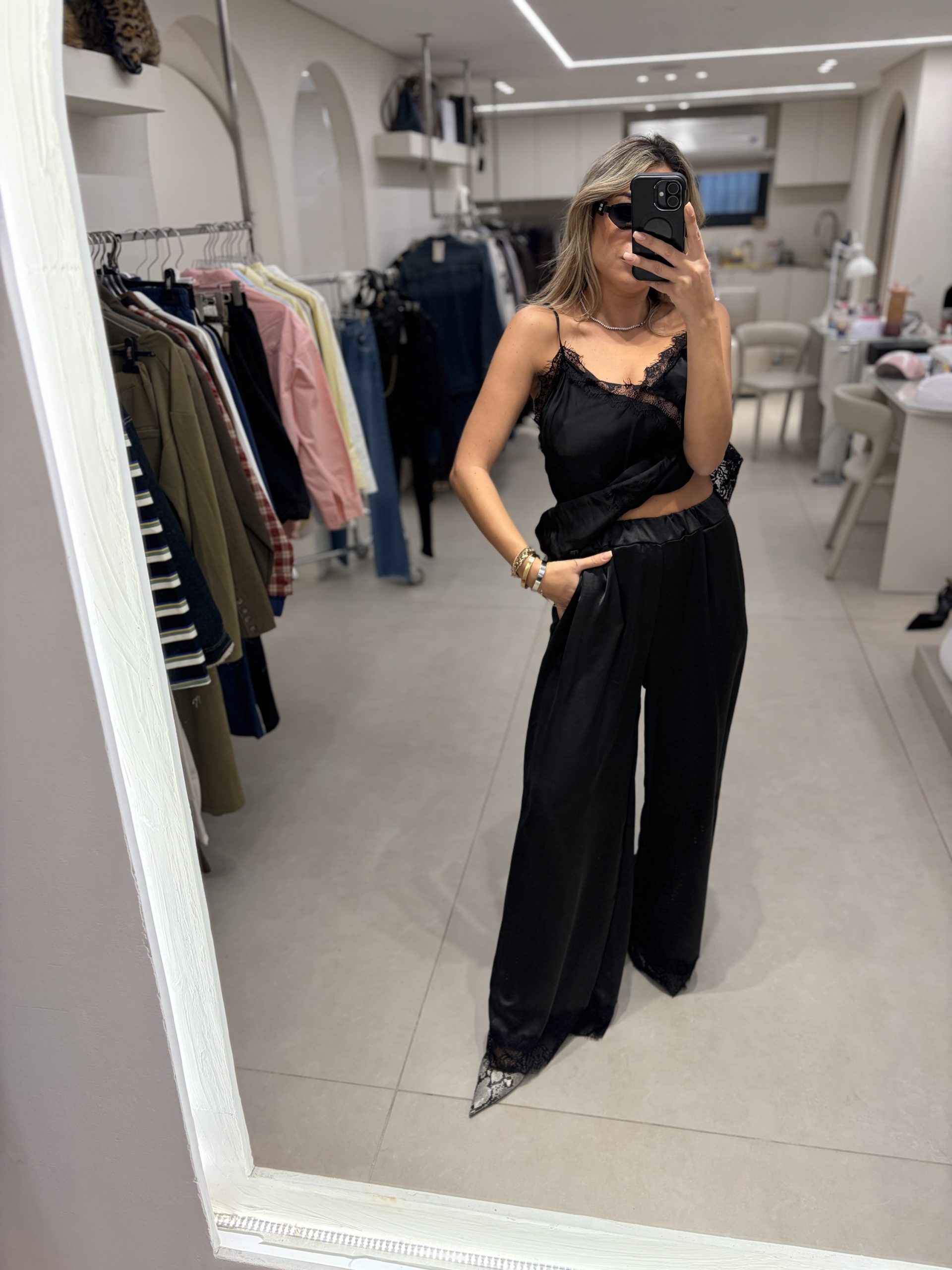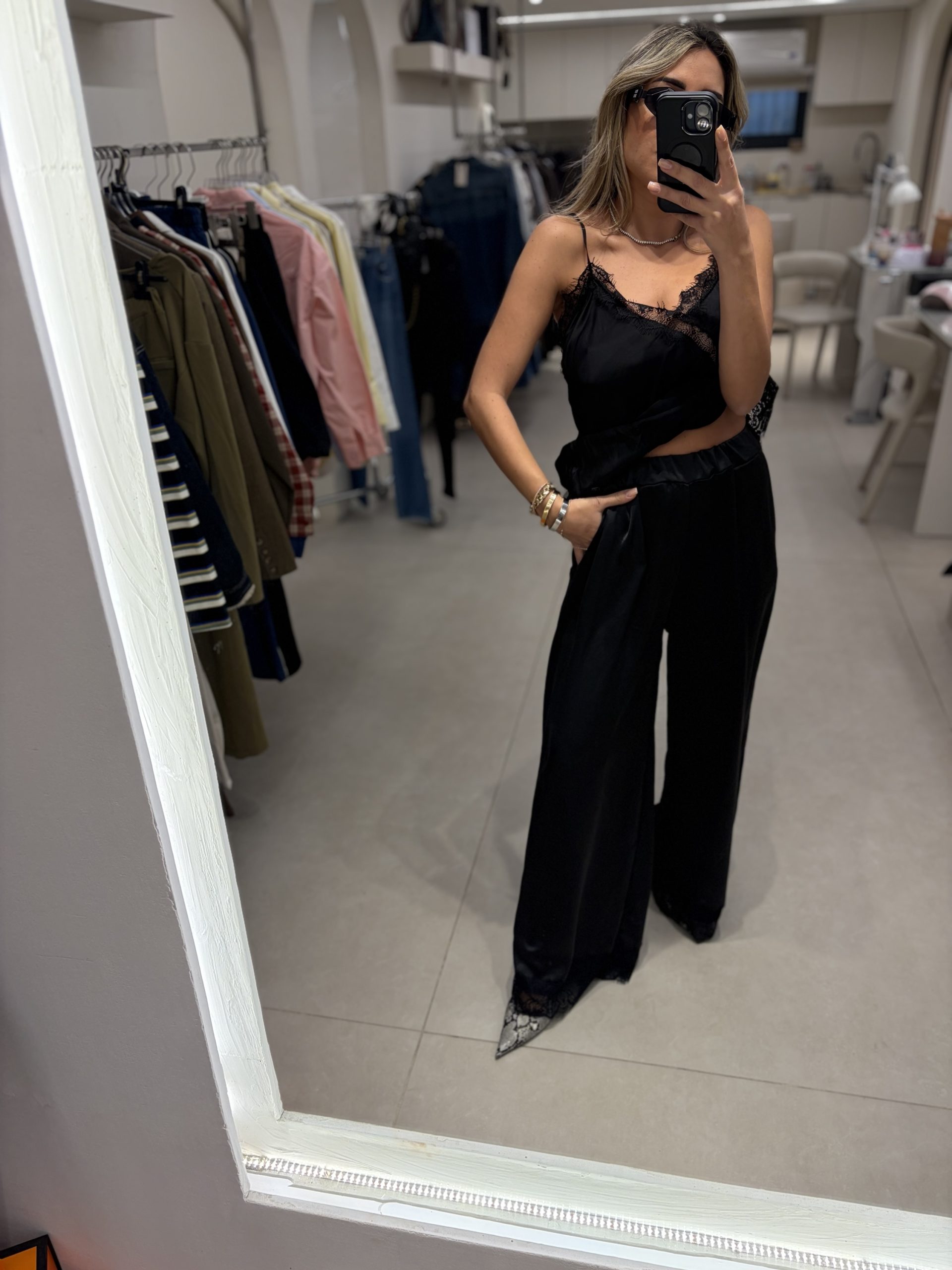 / מכנסי סטאן תחרה