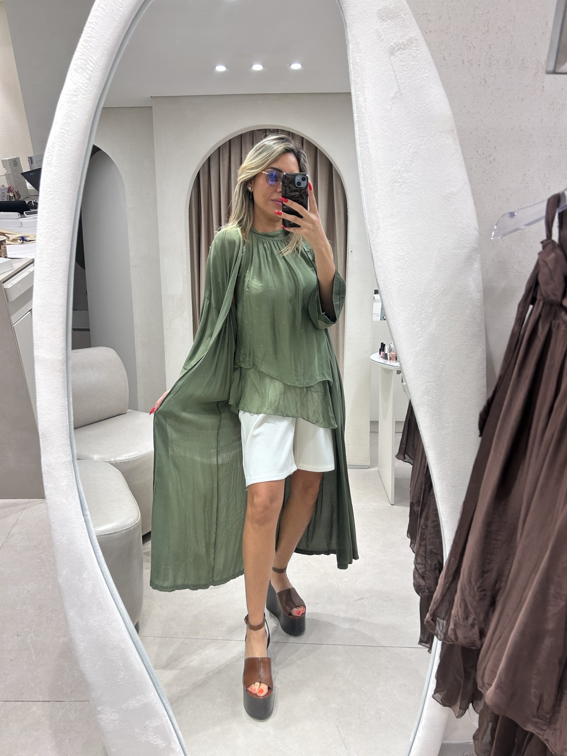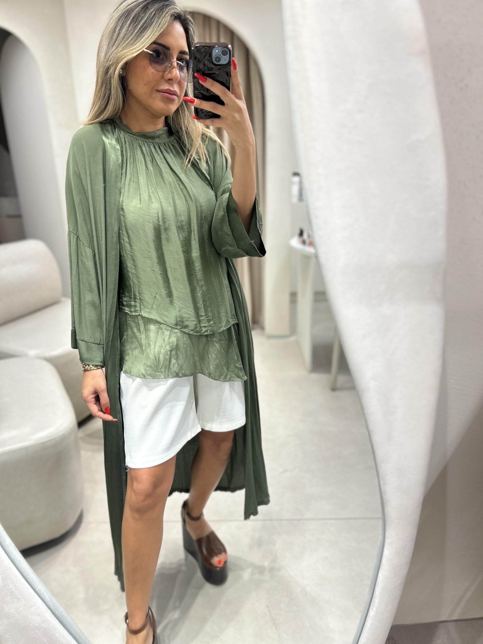 עליונית ארוכה עם צווארון סטאן וסטאן בשרוולים